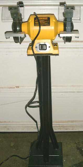 After welding the three members to form a triangular base I welded them to some of the left over rectangular stock from some of the siderails I've made. This forms the base and stand for my bench grinder. A flat plate was then cut and welded to the top of the stand and then the grinder bolted down to it. The base is filled with small off-cuts of steel and the plates from a dead battery - this acts as ballast to prevent the whole thing tipping over!