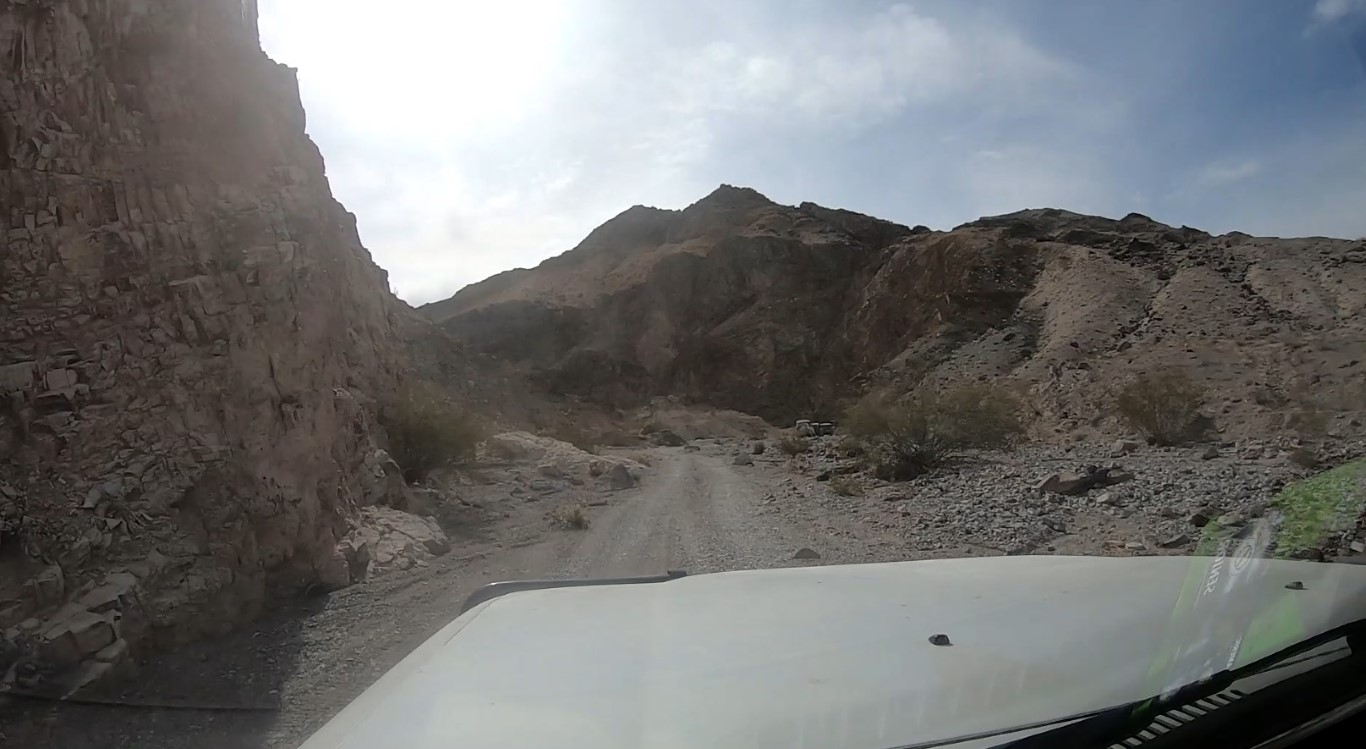 Entrance to Dedekera Canyon with the Socal group stopped for their surveying (screen capture from my gopro):