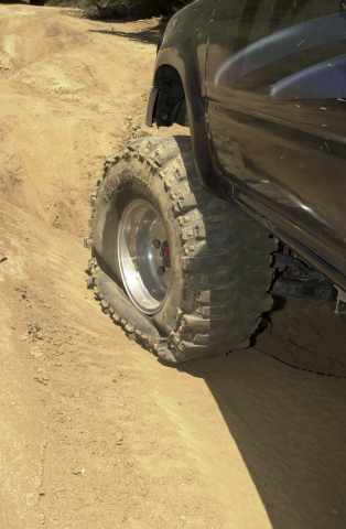 These are seriously aired down swampers. Manuel's low rider on the right. A very tucked in 285-75/16 AT.