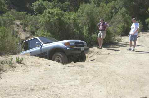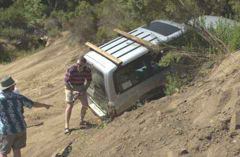 Jay's 80 getting extracted from his stuck. Just a little dimple to the plastic bumper - time for a Kaymar Jay!