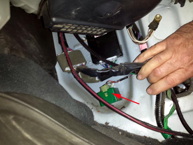 My first response was to remove the bulb since it was draining the battery down over a period of a week if our 80 wasn't driven. With a bit of time on my hands I decided to remove the Delay Relay that is in the passenger side foot well. Remove the plastic trim (just some snaps) to gain access to the green module as seen in the picture below.