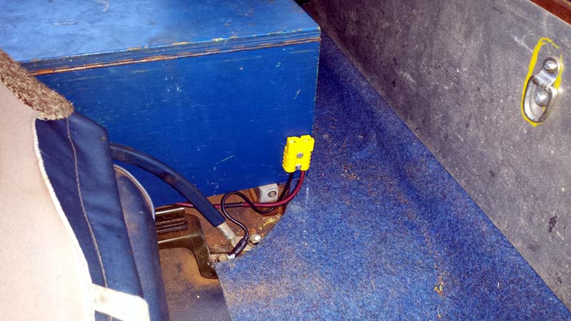 The white cable in the picture above is a new 50A capable Anderson outlet (SB50 unit). I added another unit to the main battery as well. I've put Anderson connectors on my second air compressor, on my solar panel and on my 12V drill. Anderson connectors are GREAT! They are colour coded (Yellow is assigned to +12V) and one colour will not insert into another, ensuring safety.