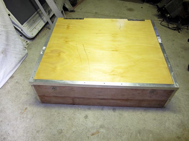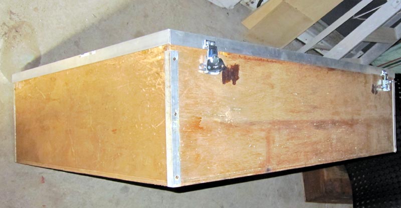 Here's the box with the new lid screwed down (after a few coats of polyurethane) to the large rear hinges and with the new aluminium angle installed. I haven't installed the clasps yet since I was planning to find some nice ones here in the US, which I did a few weeks back. So, next trip to oz will have me installing them.