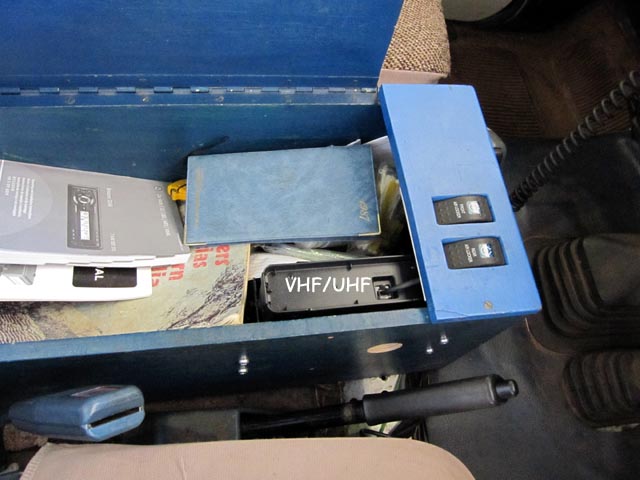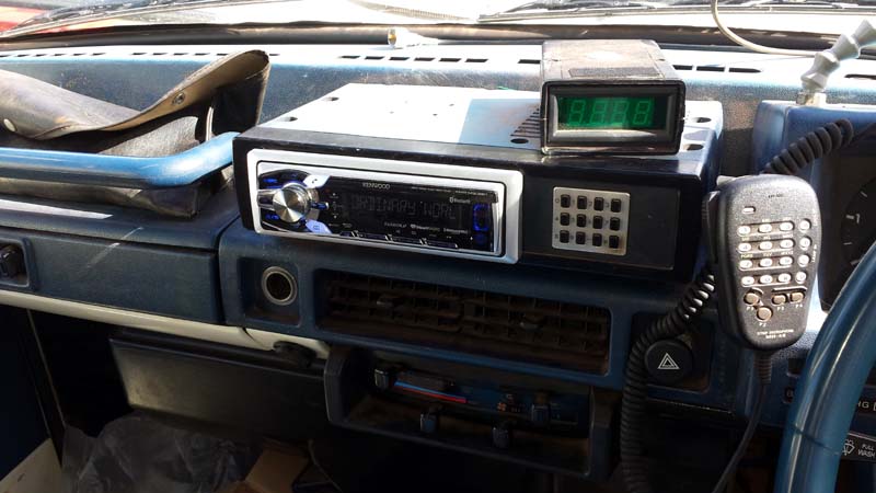 For this trip I also replaced the old tape deck with a digital only deck. It's a cheap Blaupunkt that has SD and USB for music and also an Ipod cable. No more cassettes to rattle around. I never had a CD player since with corrugations and dust it seemed likely to fail quickly. With solid state only media I now have LOTs of music choices and all fits neatly on SD or USB flash. Bonus is getting rid of a lot of cassettes in the center console and freeing up more room for other toys instead... Well during the 2014 trip the Blaupunkt gave up the ghost (by emitting a LOT of smoke), so it'll be replaced with a more modern Kenwood KMR-M308BT digital only unit. The Kenwood is compatible with modern Ipod units (latest generation touch etc) and music can be streamed via Bluetooth.