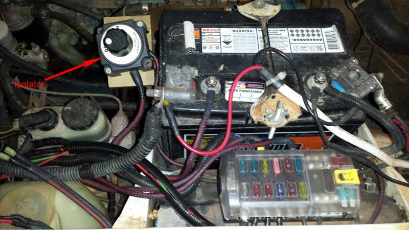 Bluesea marine switch as isolator switch for auxiliary loads.