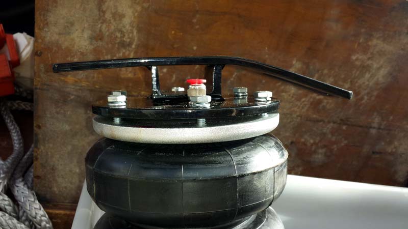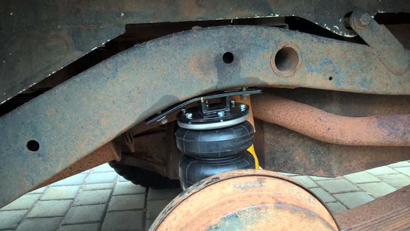 Here's one airbag with modified top bracket (top bolts not snugged down yet):