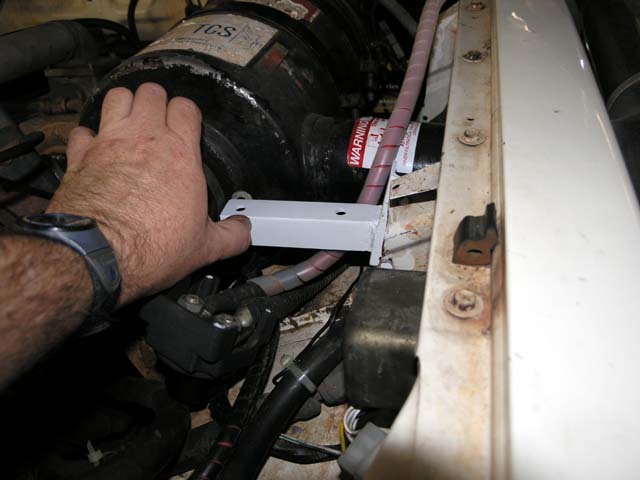 The following picture shows a test fit of the finished bracket (painted even!).