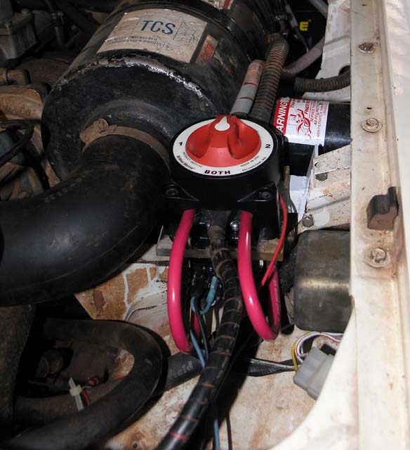 So, given the topology of the battery hookup I figured it would make sense to keep the DS battery as the auxiliary and the PS as the main since it was the short run to the starter motor. Instead of wiring the 2 batteries in series, each would be set up as an independent 12V battery. The DS one would provide power to dome/cargo lights, cig lighter outlets and the uhf radio. A heavy +12V cable would then run along the firewall across to the PS and go to the battery isolator/marine switch. The PS battery would provide all vehicle running power and also provide 12V to the accessory relay. A heave +12V cable would also be run to the isolator/marine switch.