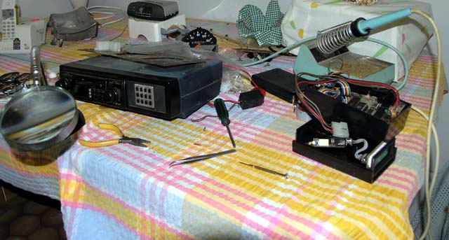 Radio pod, new and old trip computers and turbo timers. Various meters and bits. Several projects going on at the same time, getting the instrument cluster converted over to the new set AND getting the new trip/timer computer installed on the radio pod.