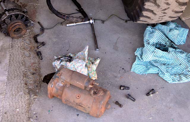 Remove 24V starter and install 12V starter in MQ.
