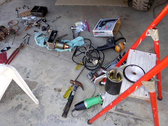You can also see a roll of tape on the seat in the foreground. It's the self vulcanizing kind that bonds and fuses to itself. GREAT stuff for covering wiring connections and battery cable ends if you want them to be reasonably weather tight and not come unraveled after a few years when the 'stick' goes away from normal insulation tape.