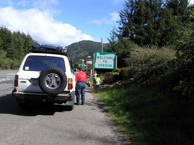The California-Oregon border on the 101. Yippee - we're about to to cross into Oregon.