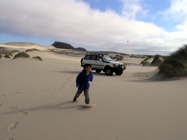 Our oldest having fun sliding down one of the dunes - of course coming back up is the payback...