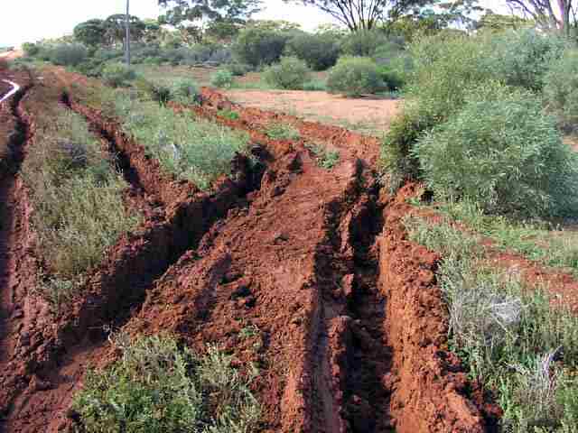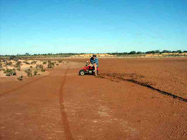 In the Yundamindera area - we're near Camel Back dam - kind of like being on the moon. No recent marks on the track.