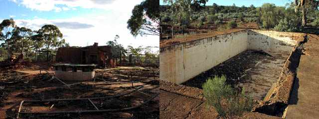 We camped just south west of Old Pinjin at what must have been a very impressive homestead in its time - mud brick contruction, plastered on the inside and even tuckpointed! It even had a swimming pool! We camped 2 nights there and the following picture shows the remains of the house and the pool.