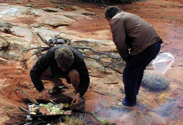 On the southern middle area of Lake Minigwal, lunchtime!! We had quite the elaborate meals on this trip - we all brought more than enough food so we never had to resort to baked beans or other 'emergency only' food. Richard is demonstrating the fine art of bbqing, not sure what Lionel is doing...