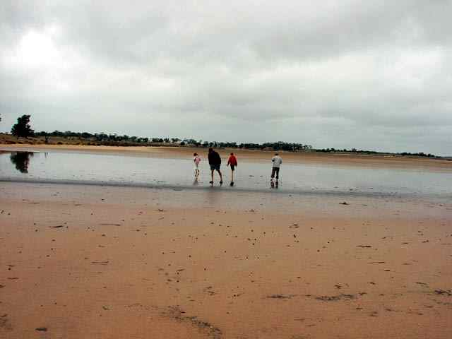 One of the many small ephemeral lakes that make up the Lake Minigwal system. Not sure what the troops are looking for - no fish out there. Some of the lakes are muddy and some are sandy, this one is sandy.
