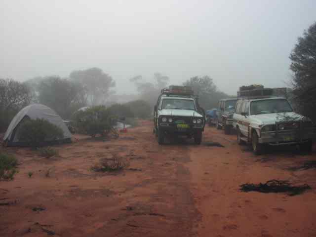 Same campsite as above near Ponton Creek, it's morning and very foggy. The one and only day/place that we had fog, made the whole area quite spooky. Note we're camped/parked on the track ;-) You can tell that this track doesn't see many visitors... Walking a few hundred metres allowed the vehicles to disappear - easy to get lost on a walk to the potty ;-)