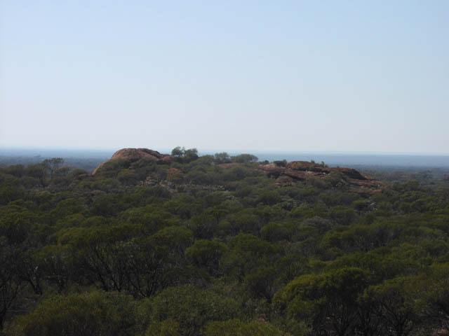 On a rock outcrop a few k's south of Toms Rock, on the way west to the rabbit proof fence. Most of the track has been somewhat recently bulldozed and is easy to follow. The last section is a bit overgrown but still easy enough to navigate through.