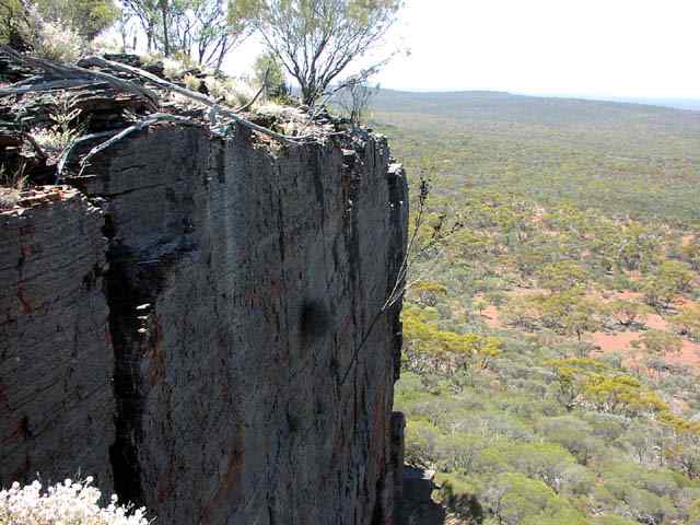 Faye's bluff in the Die Hardy Range. Quite an impressive sight and a great view from the top. You can see Pigeon rock to the west and the Windarling Range (which is being defaced by an iron ore mining company) to the south west from the top of the bluff.