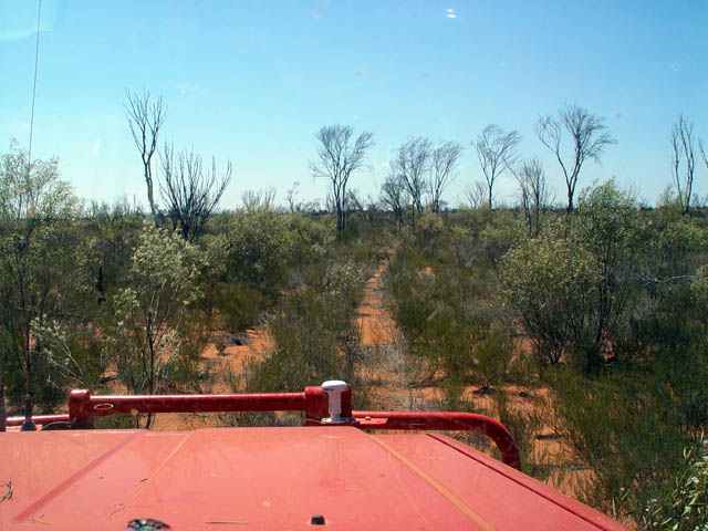 Rod's view of the track just before hitting the rabbit proof fence. Somewhat overgrown but still easy to follow and a recent fire had cleared all the high growth.