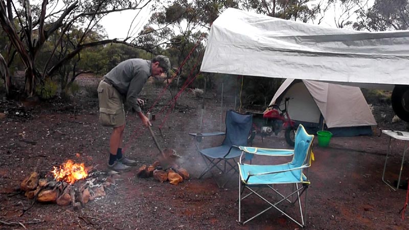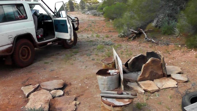 Camped at Lawrence Find and I'm relaxing before we got to work getting the fire going and cooking dinner and making some fresh bread. Lawrence Find appears to be mostly a small show with a LOT of junk left behind including tins/vehicle parts/axle housing, LOTS of broken springs etc etc. David came up with a theory that after not finding any gold they went mad and started to dismantle/destroy everything that they could find :)