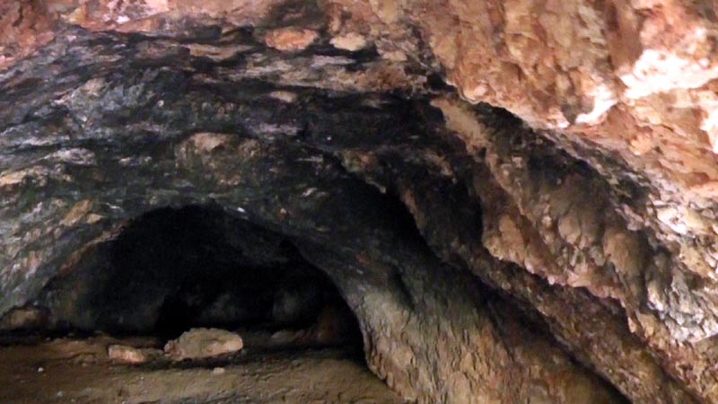 This is a picture looking into the cave. It is tall enough to stand when inside. The 'novelty' is the black soot on the ceiling of the cave, it is from aboriginal fires over many years - obviously from long ago. Be interesting to hear what comes of Salmon Mining's investigation into environmental and aboriginal issues - somehow I can't imagine it stopping their activity...