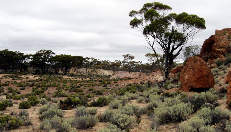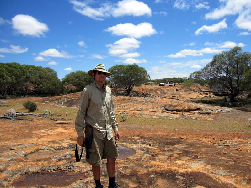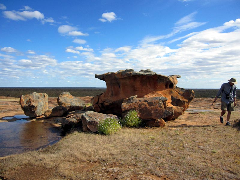 The basic trip was from Perth to Bullfinch and then up to Pigeon Rocks. From there we went up east via the Mount Manning Range and then up to Johnson Rocks on the Evanston-Menzies Road Then east towards Menzies and north at Hospital Rocks to Lawrence Find and then east/north up to Metzke's Find. From there south again and via Lemon Rock/Galah Rock and back down to the Evanston-Menzies Road and to Mulline. From Mulline we headed south via Davyhurst and then to Callion via some back roads. From Callion we took an old track down to Coonmine Well/Rocks and via Turturdine Rocks and Jaurdi to the transline. We checked out some of the mines just north and south of the transline near Jaurdi and then followed the transline west towards Koolyanobbing, but headed south along the east side of Lake Seabrook. The track then wanders through some tight/thick scrub and starts to open up eventually. We reached Weowanie Rocks and had a nice wash, lots of water there. Then south to Yellowdine and back to Perth along the highway.