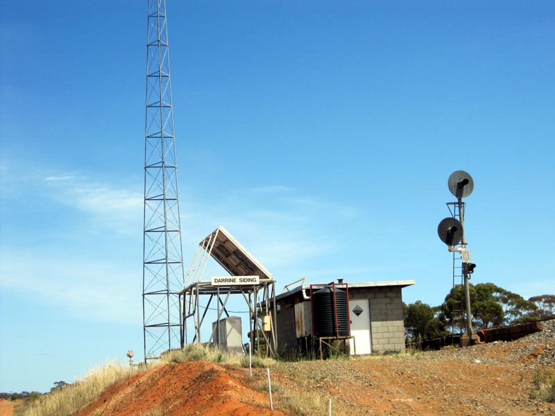 We camped a night south of the transline and Jaurdi, then the next day headed west along the transline access road. Here's a picture of Darrine Siding and a nice full rainwater tank of water. We filled up a gallon of water here Finally a day of mostly blue skies, something we didn't get to see much of on this entire trip.
