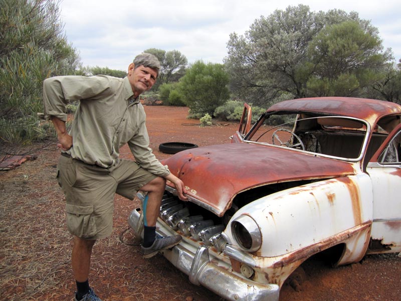 Old DeSoto at Illaara. Doesn't look much worse for wear compared to our 2000 trip, so it is dealing with the weather out there better than the old structure is. Not sure if David is pitching it as a good buy or whether he's wanting to buy it, though there didn't appear to be a salesman in the near vicinity.