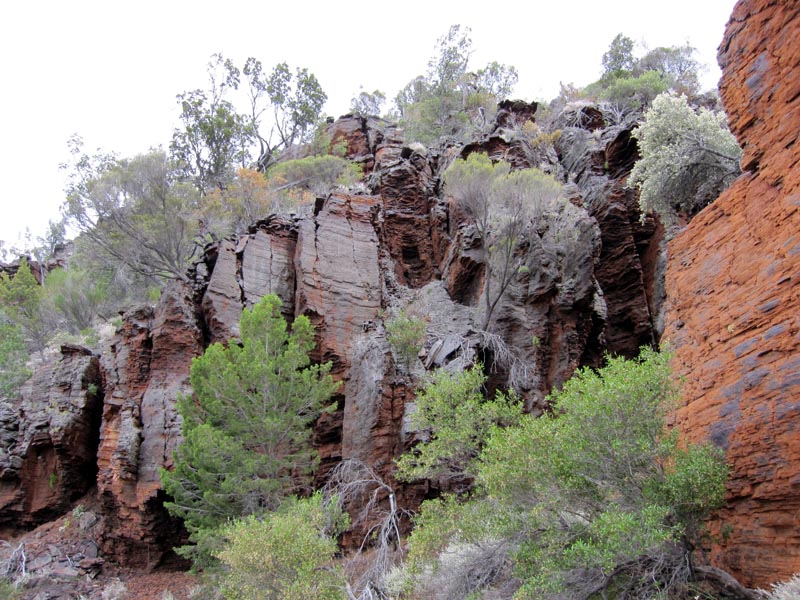 Hiking to the edge of Faye Bluff to the western entrance that allows you to climb to the top of the bluff. Let's hope the mining companies don't decide that this is another chunk of iron ore that they must export to China...