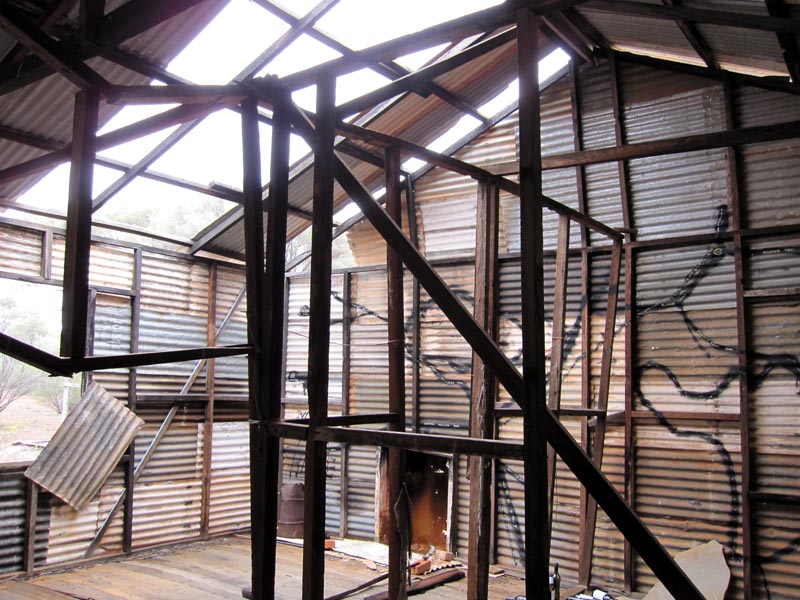 We then headed north on the cut line which is actually an excellent graded road that you can comfortably sit on 80k/hr. Years ago when Lionel & I first went up this way we had to navigate the original track that was fairly overgrown in areas. This new upgraded road makes getting up to Illaara much faster and easier. Unfortunately the old structure is showing signs of major deterioration from our first visit 11 years ago. From the outside it doesn't look too bad.