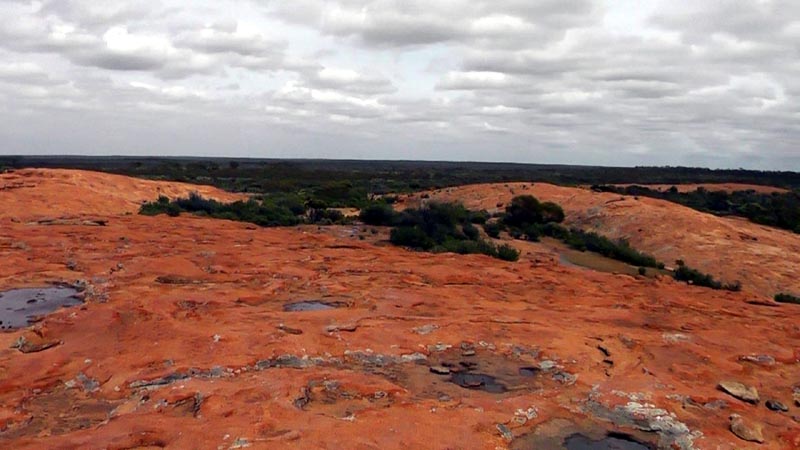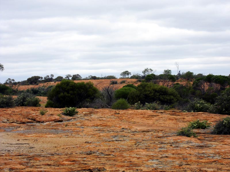 Just south of the Gnamma hole and likely on the same outrock structure is Pilaming Rock. We drove by without stopping to investigate its extent or water catchment ability.