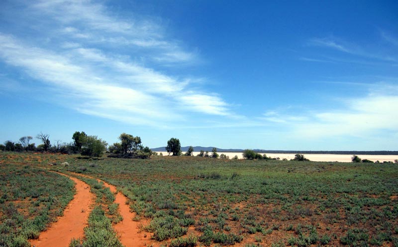 On the way up to Lawrence Find we passed a few claypans. This one was next to the track with plenty of unappealing water in it. At least we had a nice break in the weather and some generous amounts of blue sky.