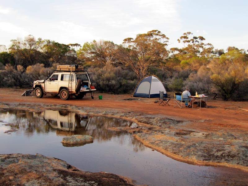 Camped at Weowanie Rocks and again considerable water all around us. The solar panel is setup facing the setting sun. The 80W panel did an excellent job of keeping the aux battery topped up during the entire trip. This allowed the Engel fridge to run 24/7 to keep our food and drinks cold.