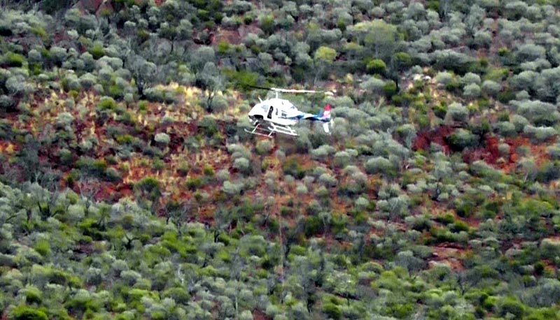 Picture of helicopter with cable hanging underneath. Now the entire area around Mt Manning is named "Mt Manning Nature Reserve", though unfortunately that hasn't stopped a mining company from getting a license to explore within the nature reserve -> http://www.salmonriverresources.com/s/Mt_Manning.asp