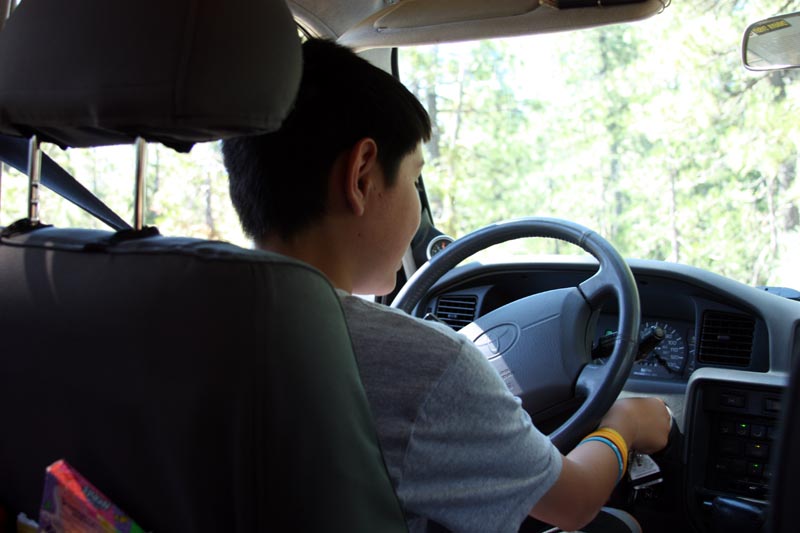 Oldest, now 13 and an official teenager gets to do some driving. First, one needs to turn the ignition key and start the engine.