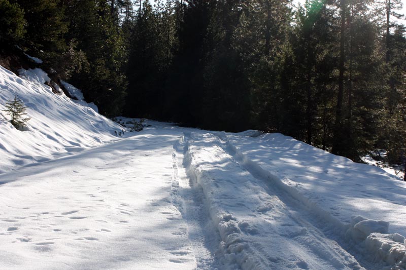 Here we are on HWY 36 at a few thousand feet. That's quite a lot of snow given that we'll be up above the 5000' line.. My plan was to head south of hwy 36 on a forestry road called Red Mountain Motorway - fancy name for a dirt road. Given the amount of snow here versus last year I think we're going to be limited in how far we can head off the main road...