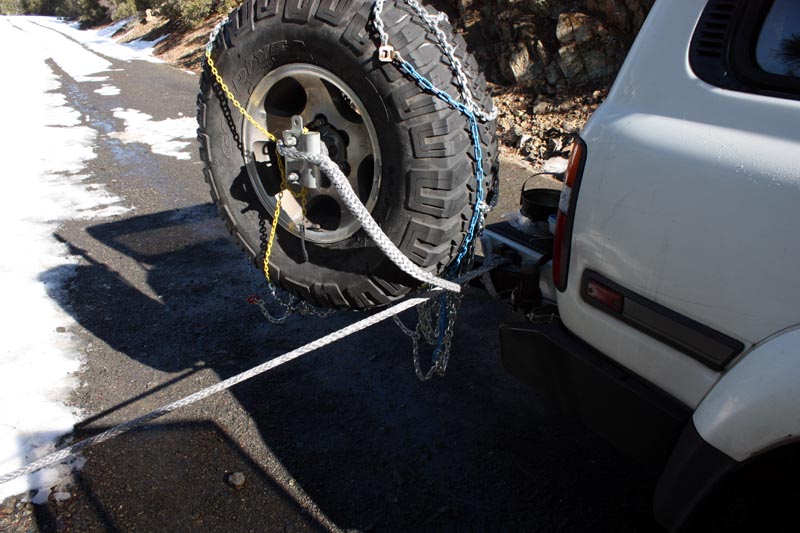Later in the morning after breakfast and the sun had warmed things up a bit more, it was time to play. Hooked up 100' of synthetic tow rope so we could head down to the creek alongside the road we were on.