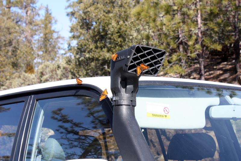Everyday we were in the area, once the temperature warmed up a bit, we would have butterflies come and visit. They seemed to like the black areas of the 80 - not sure if it was the colour or just the fact that those objects were warmer in the sun. Anyhow, it was a neat feeling to have them visit us.