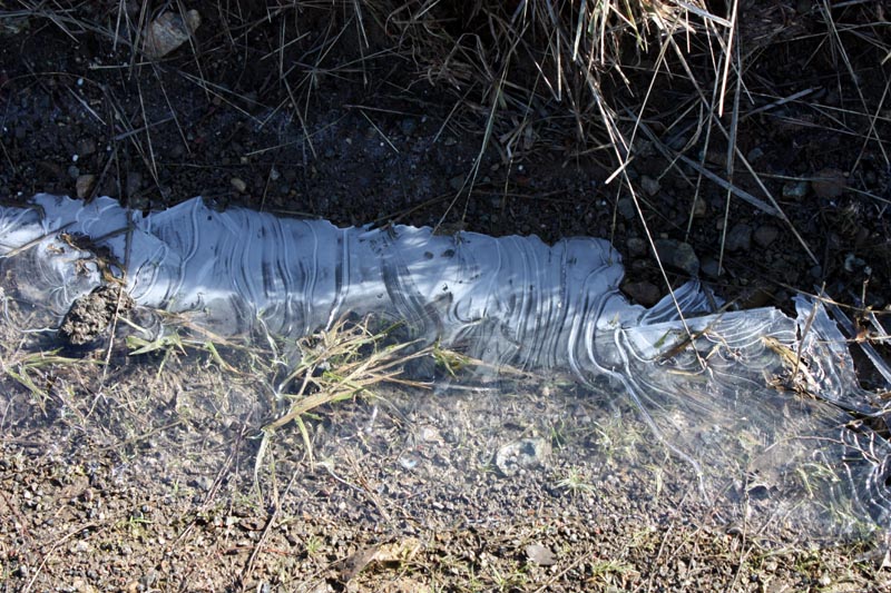 Ice on the side of the track - interesting striations that were formed as the water froze. I'd hate to think what is mixed in with the water...