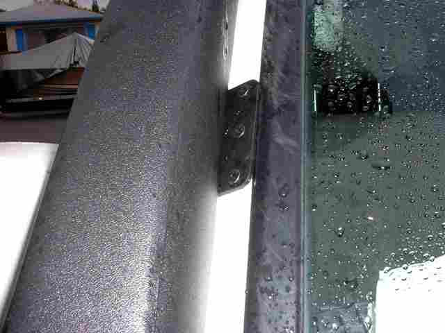 A picture of the pillar bracket. We used 10x32 1/2" long black plated hex drive screws. We drilled out the original holes in the bracket to the correct diameter and then ran a countersinking bit to prep the holes.