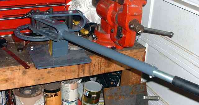 The following picture shows the cheapie ($50) bender that I used to make the brackets.