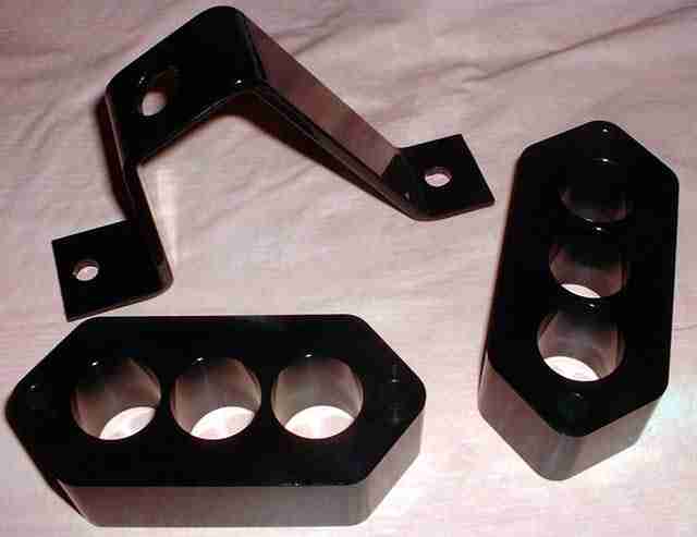 Here are the rear sway brackets after powder coating and the rear bump stop drop blocks after anodizing.