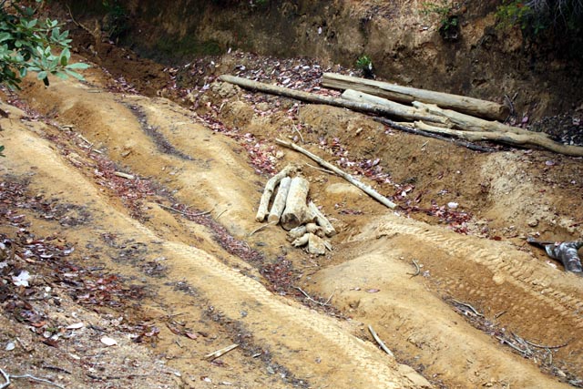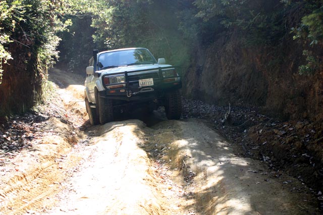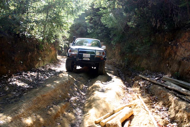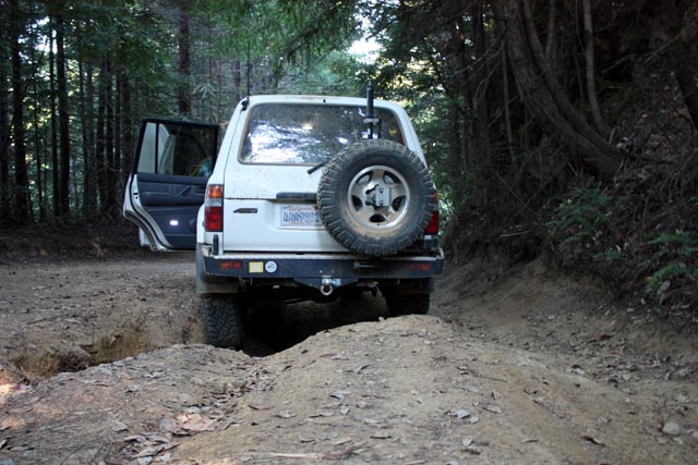 Well, every time we've camped at Usal beach we drive the road up to Shelter Cove to have fish & chips at the store. This was a short stretch of the road that looked a bit worse for wear from winter travel. Combined with winter travel and a down slope, water and tyres have created ruts in this short section. Not an issue for summer travel.