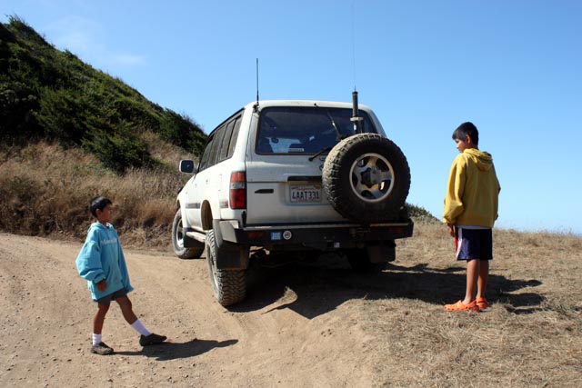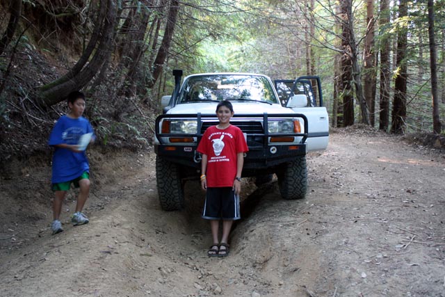 Back to the short rutted section. Photo op for the kids while I drive the 100' or so of ruts.