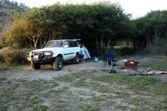 Camp setup in from the beach at Usal Beach. Getting ready for evening.