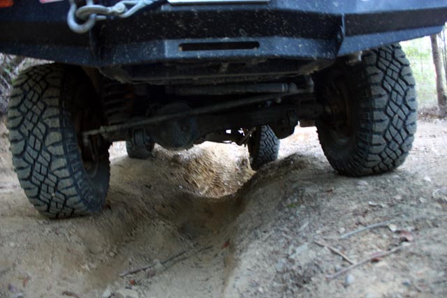 Same spot, straddling the rut, get to see the suspension doing its magic. Take it slow and you barely even feel the vehicle drive across the rut.