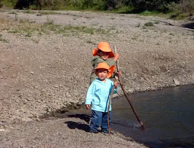 And this sums up the holiday - happy brothers hanging out together with water, rocks and sticks (just need fire)...