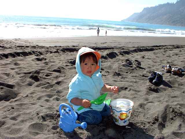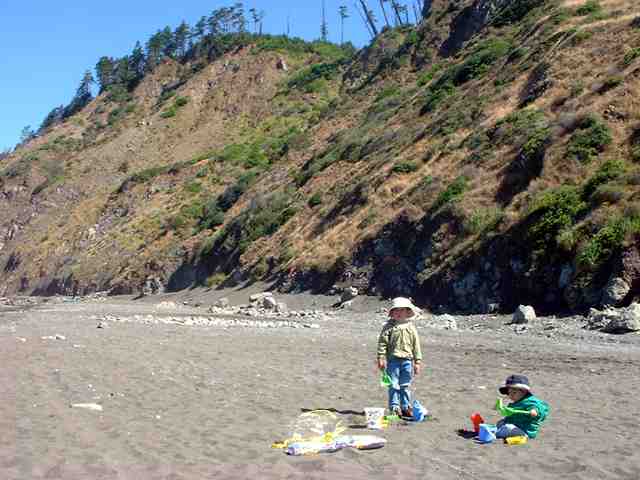 Usal Creek, just behind where we were camped. A great place for two little boys (and one big one) to throw rocks into the water. The creek was dry on our 2nd trip a few weeks later - so it must all have been just due to the rain earlier in the week.